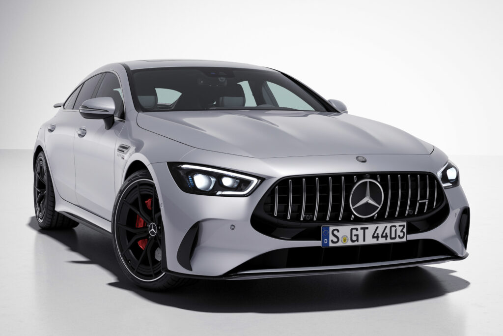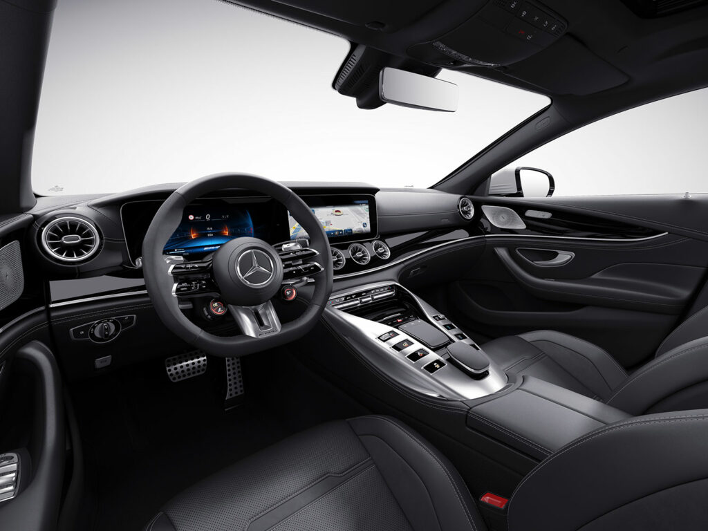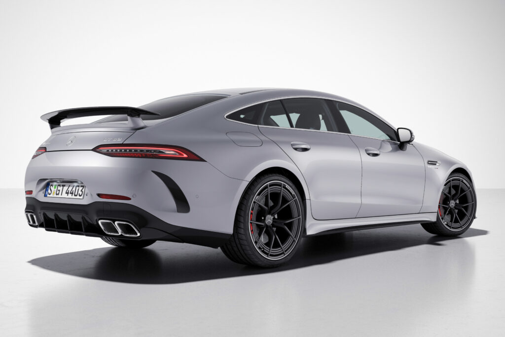 The GT 63 4MATIC+ 4-Door Coupé delivers 430 kW (585 hp) with a maximum torque of 800 Nm. Acceleration from 0-100 km/h takes 3.4 seconds and the top speed is 310 km/h. The more powerful GT 63 S 4MATIC+ 4-Door Coupé offers 470 kW (639 hp), 900 Nm of torque, 0-100 km/h in 3.2 seconds and reaches 315 km/h, and has held the Nürburgring Nordschleife record in the luxury class since 2018.